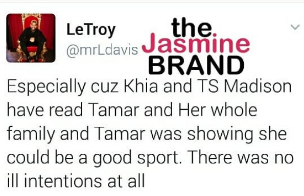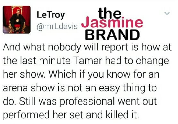 Tamar Braxton’s close friend, LeTroy Davis, has taken to social media defending his friend. Earlier this week, the singer and reality star made headlines, when it was reported that her surprise guests – Khia and TS Madison – were almost kicked out of the concert. [FYI: Khia and TS Madison have a YouTube show called the ‘Queens Court’ where they make controversial commentary on celebrity news and hot topics].
