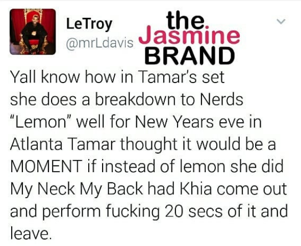 However, Tamar’s friend says her motives for bringing them out were positive. In fact, he says Tamar wanted to bring Khia out on stage to perform her hit song, ‘My Neck, My Back’. See his tweets below.