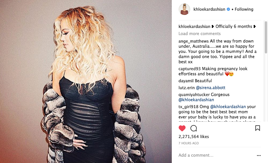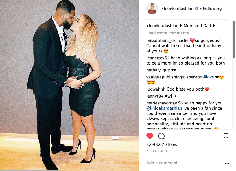 This week, she showed off her growing baby bump. She also posted a cute photo kissing her future baby daddy/boyfriend Tristan Thompson.