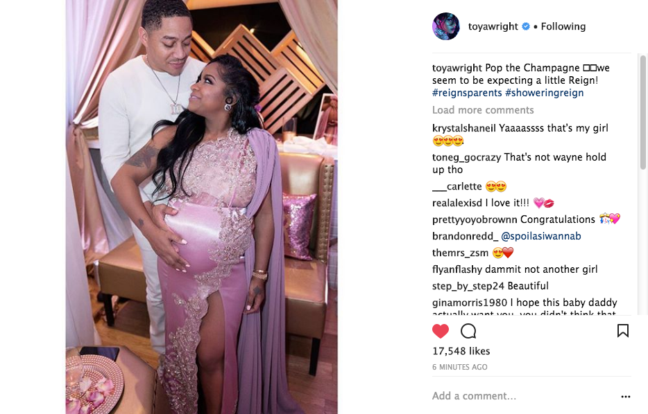 Update: Toya has officially debuted her child’s father. Posting a photo of the pair at their baby shower, she captioned the photo: