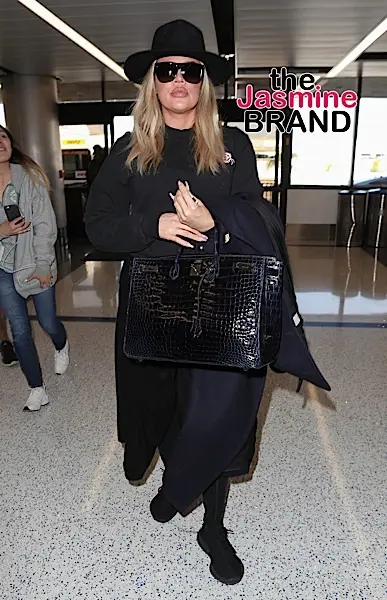 Khloe Kardashian and her growing baby bump are spotted arriving at LAX, wearing shades, a hat and Yeezy’s from her brother-in-law, Kanye West’s sneaker line.