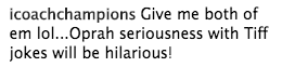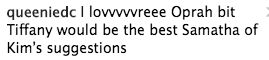That would be showing a different side to Oprah. Tiffany or Sofia would be better fits.