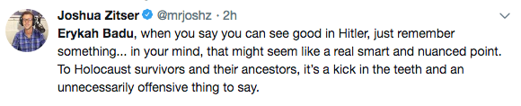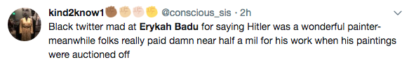What are your thoughts about Badu’s comments about Cosby and Hitler?