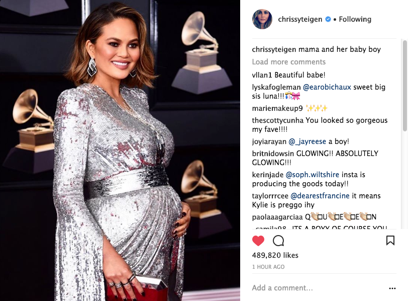 John Legend and his wife Chrissy Teigen are having a bouncing baby boy! Sunday night, the super model revealed the news. Posting a photo of her on the red carpet at the Grammy Awards, she writes, celebrated the upcoming arrival of their baby with a gender reveal party. Sharing the news on social media, the singer and producer writes,