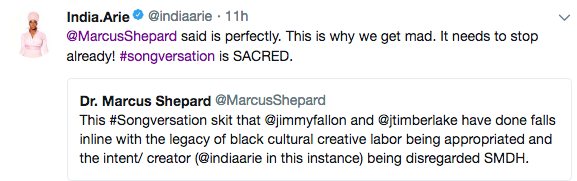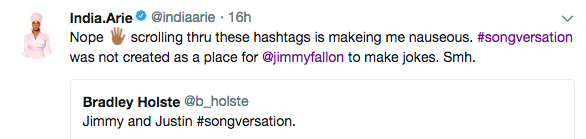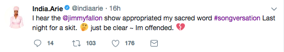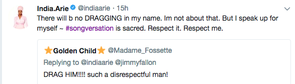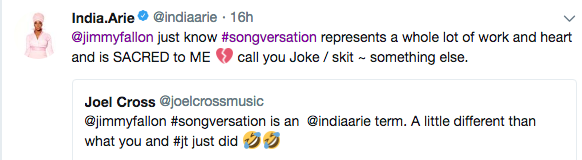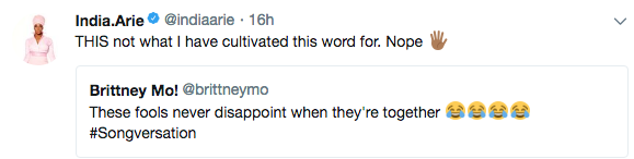 Apparently, India Arie, caught wind of the skit and found it highly offensive, as two of her album’s are titled ‘Songversation’. She accused the pair of not respecting her work. See her tweets below.