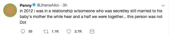 Jhene was married to Dot from 2014 until 2016 when she filed for divorce. Her divorce became finalized in October 2016. Some fans assumed Aiko had cheated on Dot, but Jhene denied this accusation, saying the first date – which was platonic- happened before she married Dot.