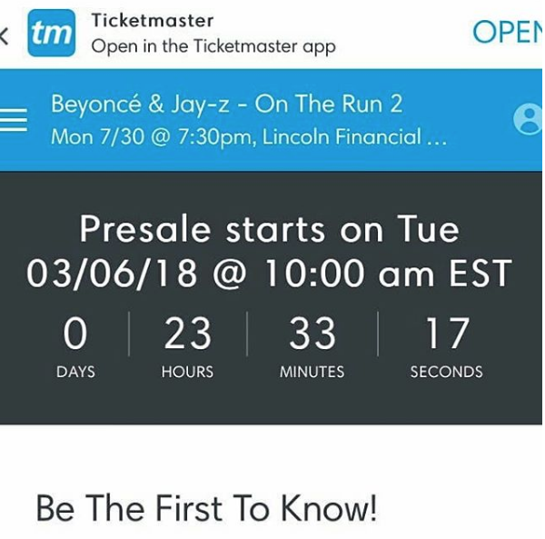 An “On the Run 2” Tour is coming soon, maybe. Monday morning (March 5th), Beyonce’s Facebook and Ticketmaster pages announced a date for a new tour, on July 30 at Philadelphia’s Lincoln Financial Field.