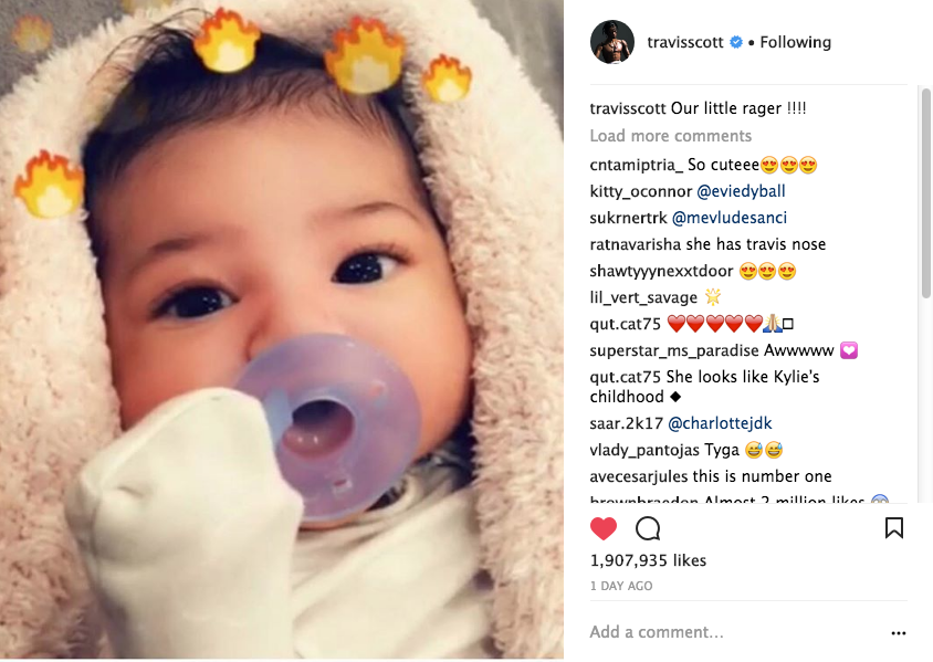 Travis Scott is giving us another glimpse of his and Kylie Jenner’s newborn daughter, Stormi. Over the weekend, he shared a new photo of their daughter on social media, captioning it: