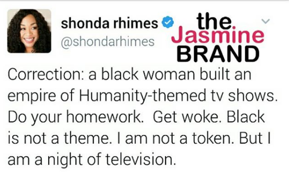 No word on what triggered her comments, but Rhimes’ resume on the small screen is impressive.