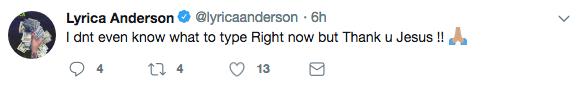 Lyrica also posted a message on Twitter.