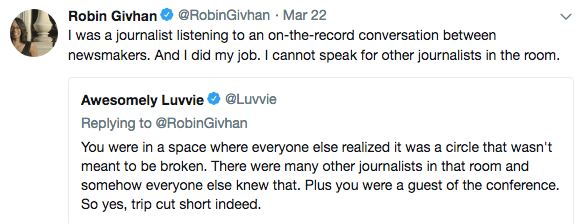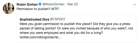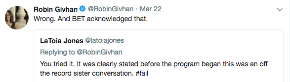 Reportedly, when BET saw the story, she was uninvited to continue in the conference. They also allegedly canceled a panel she was due to moderate. Givhan responded to criticism on social media about the incident.