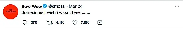 Is Bow Wow (real name Shad Moss) having a slight public meltdown? Over the weekend, the 31-year-old rapper and Growing Up Hip Hop Atlanta reality star shared a few social media messages that had some speculating that he may be in a sad head space. On one post he writes,