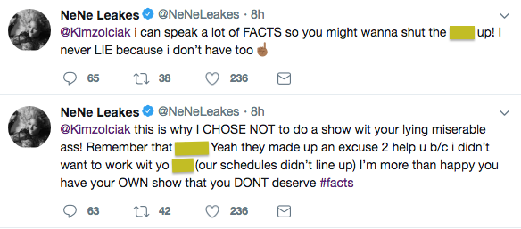 Shortly thereafter, NeNe and her former BFF Kim Zolciak began to trade insults on social media. See their exchange below.