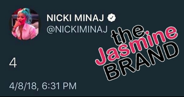 Nicki Minaj has her Barbz in a frenzy. On Sunday, she simply tweeted the number 4, then quickly deleted the message.