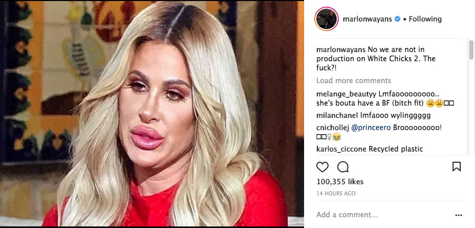 Marlon Wayans is clowning Kim Zolciak’s appearance. On Sunday, the comedian posted a photo of the reality star during the Real Housewives of Atlanta reunion.