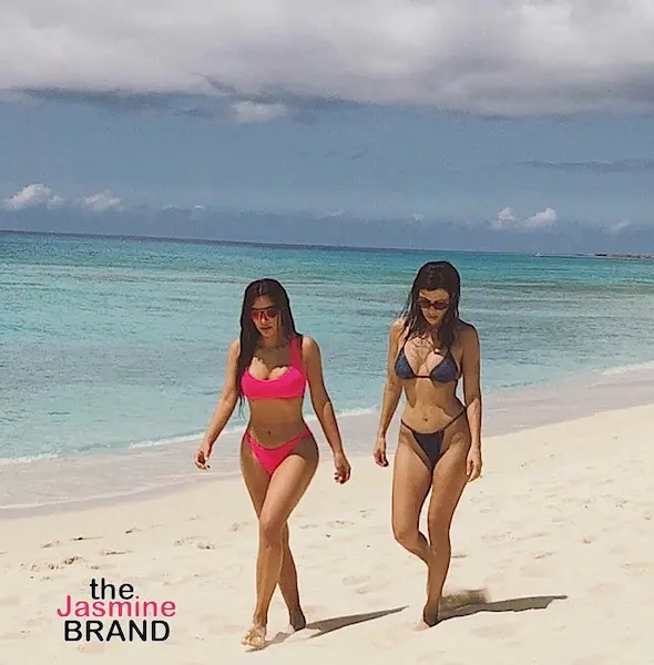 This week, Kim and Kourtney vacayed in Turks and Caicos. Their getaway happened to coincide with allegations that Khloe’s boyfriend, Tristan Thompson, allegedly cheated a few times during their relationship and her pregnancy.