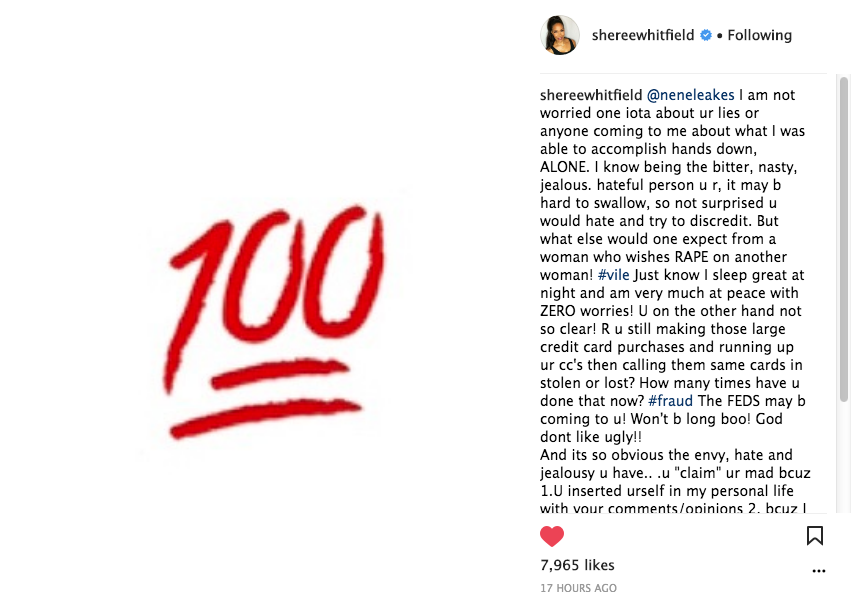The insults between Sheree Whitfield and her Real Housewives of Atlanta co-star NeNe Leakes are at an all time high. On Wednesday, the pair exchanged negative pleasantries on social media. Sheree posted a lengthy social media message to NeNe writing,