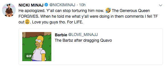 — NICKI MINAJ (@NICKIMINAJ) April 14, 2018