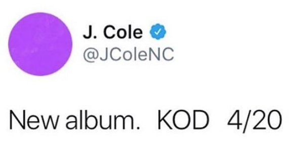 J. Cole has announced a new album. The rapper shared the news on social media, revealing that it’s titled “K.O.D.” and will be released April 20.