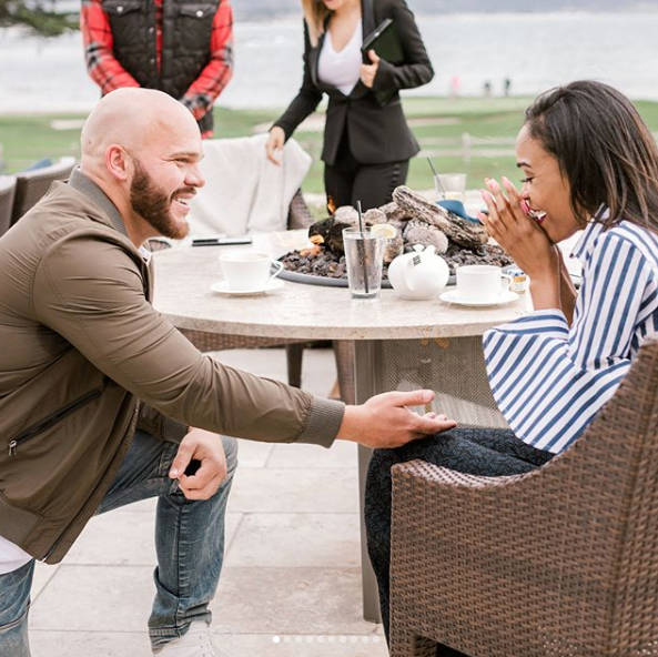 Chad proposed while on vacation in Pebble Beach, California, dropping to one knee and giving her a 5-carat rock.