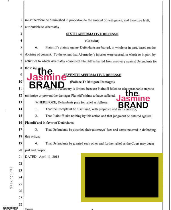 The actor says the actress failed to minimize or prevent any damages she claims to have suffered. Further, he accuses her of failing to exercise ordinary care on her own behalf in connection with the