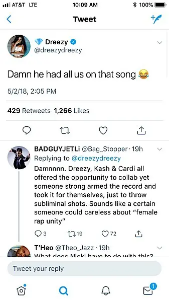 Dreezy later revealed she was also offered a feature on the song. She was even pictured in the studio with YG earlier this year.