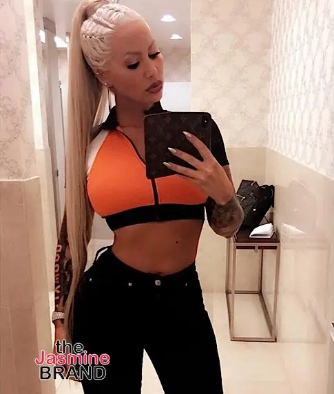 Issa Ponytail type of day for Amber Rose who snapped this cute pic in the bathroom.