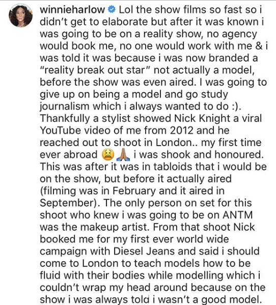 After her comments about ANTM went viral, Winnie posted the following on social media.