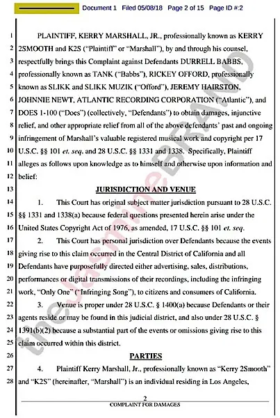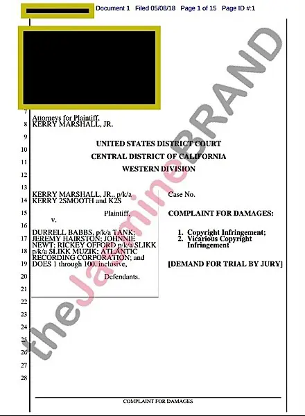 Kerry Marshall (aka Kerry 2Smooth) filed suit against Tank, Johnnie Newt (aka J. Valentine) and Atlantic Records. In the court docs, Marshall explains Tank recently released an album “Savage”, which contains a song entitled “Only One”.