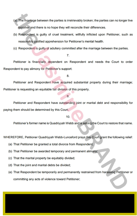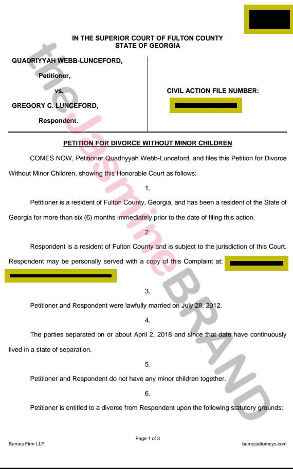 theJasmineBRAND exclusively reports details surrounding the divorce between Quad Webb-Lunceford and her estranged husband Gregory Lunceford.