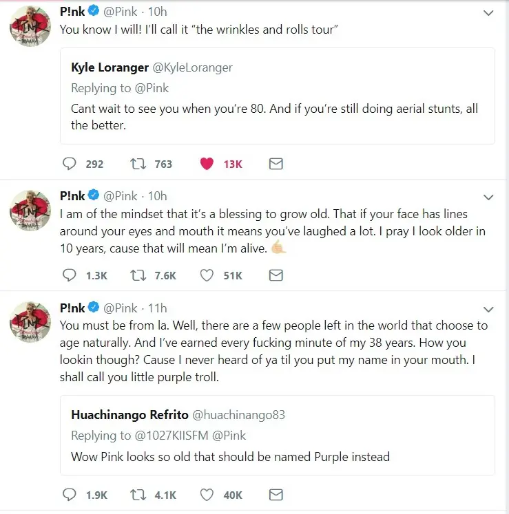 Pink Responds To Troll Who Says She Looks Old