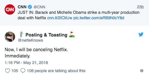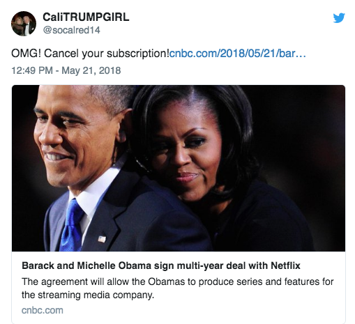 announced that former President Barack Obama and First Lady Michelle Obama struck a multi-year deal with them to produce new shows, docu-series, and movies. Since the announcement, both the Obama’s and Netflix have received some backlash from conservatives, with some threatening to cancel their subscriptions. See some reactions below.