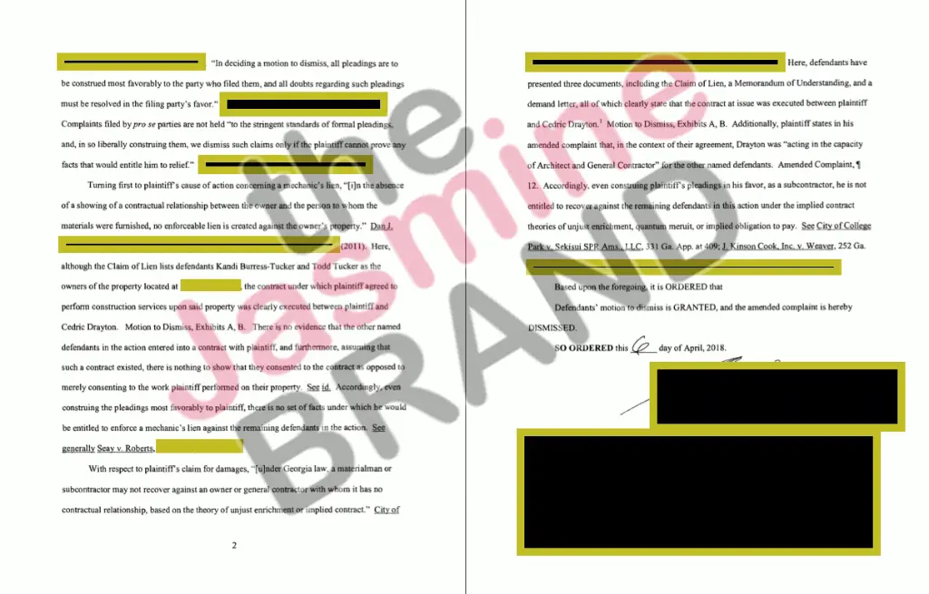 In the lawsuit, he said he was forced to pay his crew of workers out of his own pocket. Busbee had previously filed a lawsuit trying to get his money. On September 26, 2016, the two parties appeared in court and Drayton admitted to not paying and agreed to restitution payments over a year.