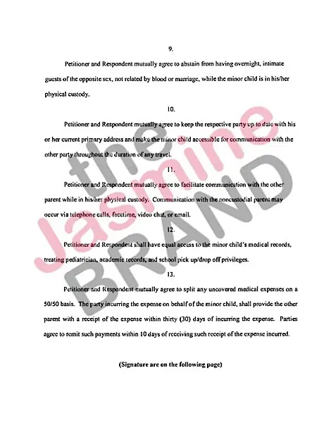 Petitioner and Respondent mutually agree to abstain from having overnight, intimate guests of the opposite sex, not related by blood or marriage, while the minor child is in his/her physical custody.