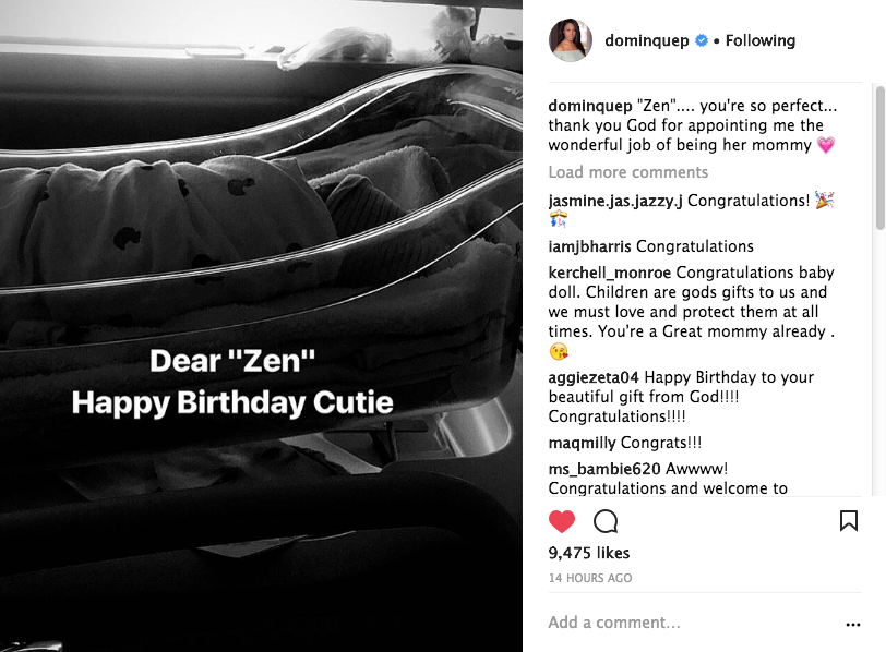 Earlier this month, DomiNique announced that she had welcomed a little girl.