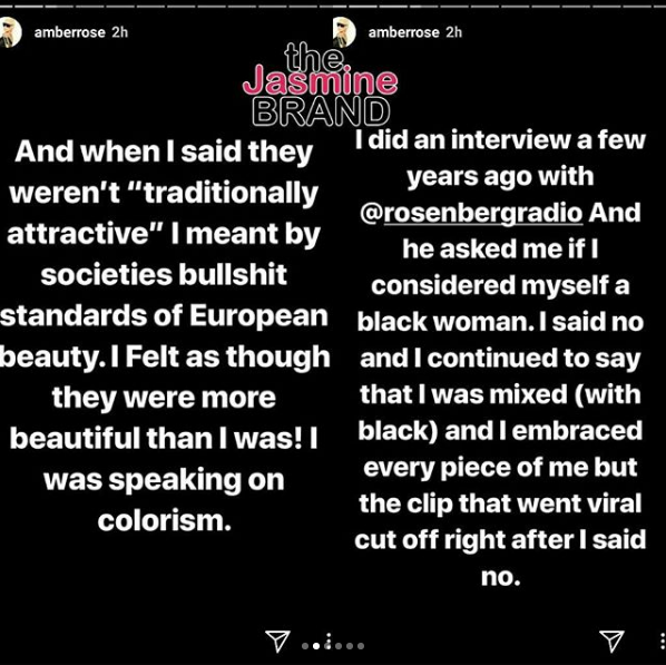 …he asked me if I considered myself a black woman. I said no, and I considered myself mixed (with black), and I embraced every piece of me but the clip that went viral cut off right after I said no.