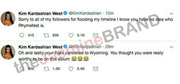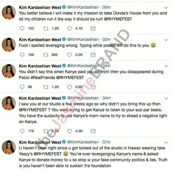 U haven’t been right since u got kicked out of the studio in Hawaii wearing fake Yeezy’s @RHYMEFEST. You’re over levergenging (sic) Kanye’s name & asked Kanye to donate money to u so stop w your fale community politics & lies. Truth is you haven’t been able to sustain the foundation.