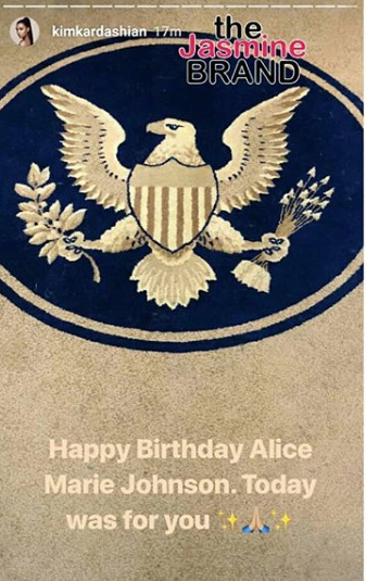 According to reports, she did not bring reality TV cameras. Her hope is to make a legal argument to President Trump on why he should pardon Alice Johnson who has been in prison for more than 21 years. Kim came across Alice’s story on Twitter earlier this year and reached out to President Trump’s daughter, Ivanka, who then connected her with Jared.