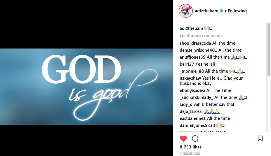 Bambi rushed to her husband’s side after hearing about the fatal news. The mother to be posted a picture on Instagram giving God thanks for her husband’s safety.