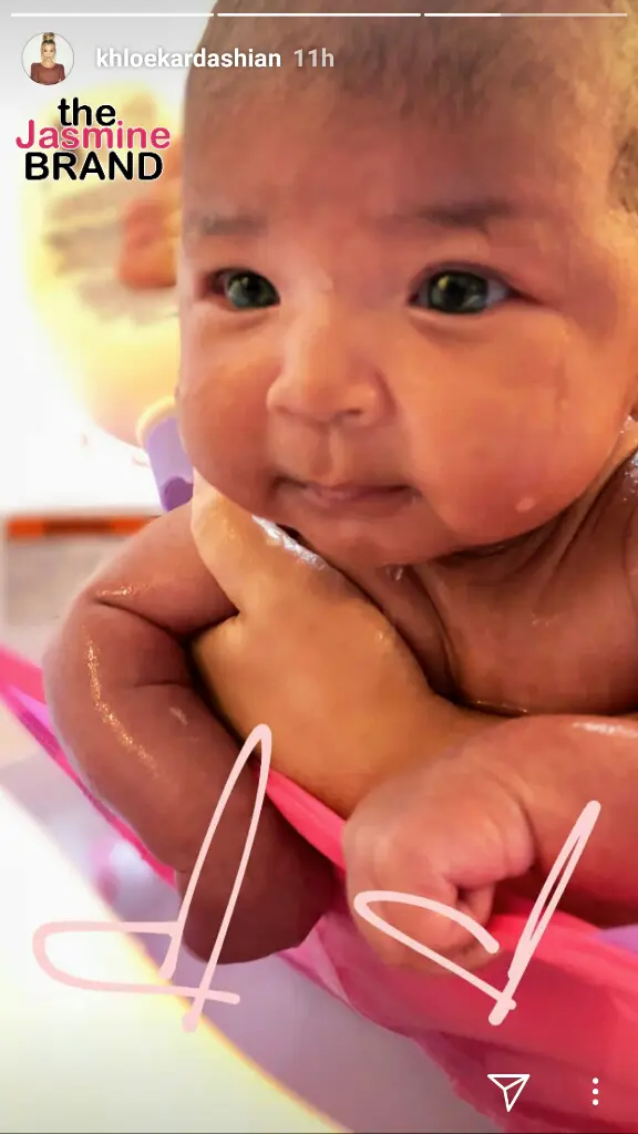 Khloe Kardashian shared an adorable picture of her daughter, True, last night on social media. The baby girl is caught almost smiling in the direction of the camera as her mom gives her a bath. It’s a sweet moment caught on camera preceding a date night that Khloe had with boyfriend Tristan Thompson. Khloe also tweeted that she couldn’t believe how fast time is flying by as baby True turns two months today, posting,