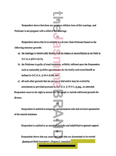theJasmineBRAND exclusively reports, new details have surfaced concerning the divorce of BRAVO reality star’s Quad Webb-Lunceford and her estranged husband, Gregory Lunceford.