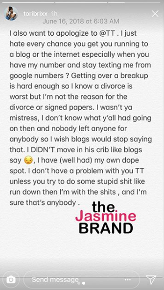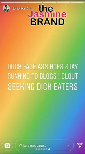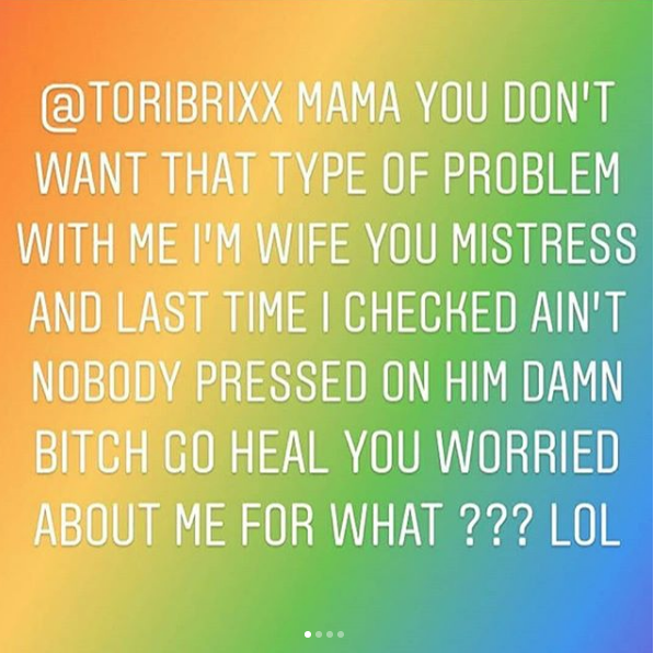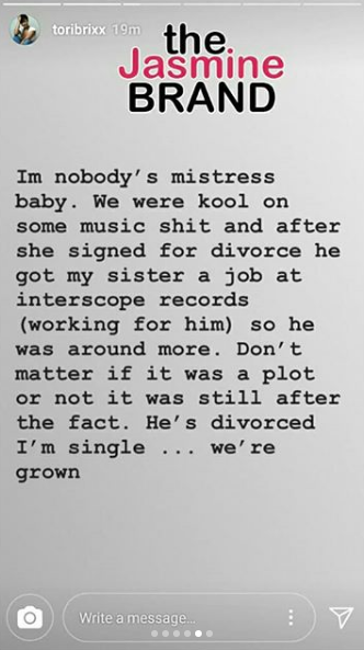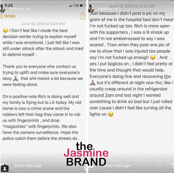 Tori posted several messages to social media about the incident. She also defended herself against Rich’s estranged wife, who claims that Tori is a mistress. See the messages below.