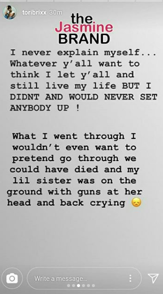 According to reports, she was pistol whipped and had to receive stitches on her face. Tori’s sister was also present, but was not physically injured, reportedly.