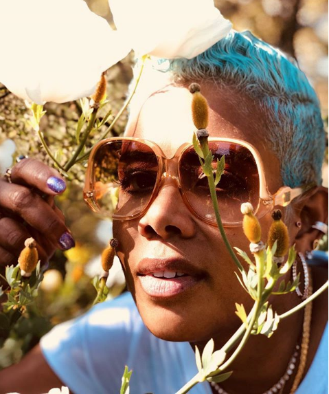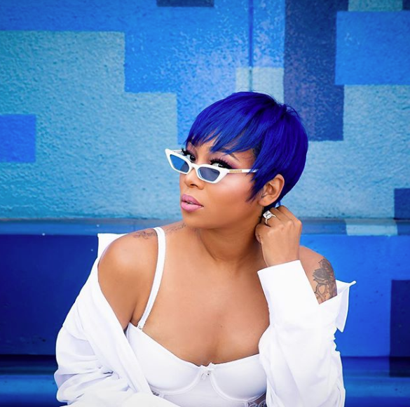 Blue is the new black! Just ask singer Monica who is showing off a new, bright blue crop.