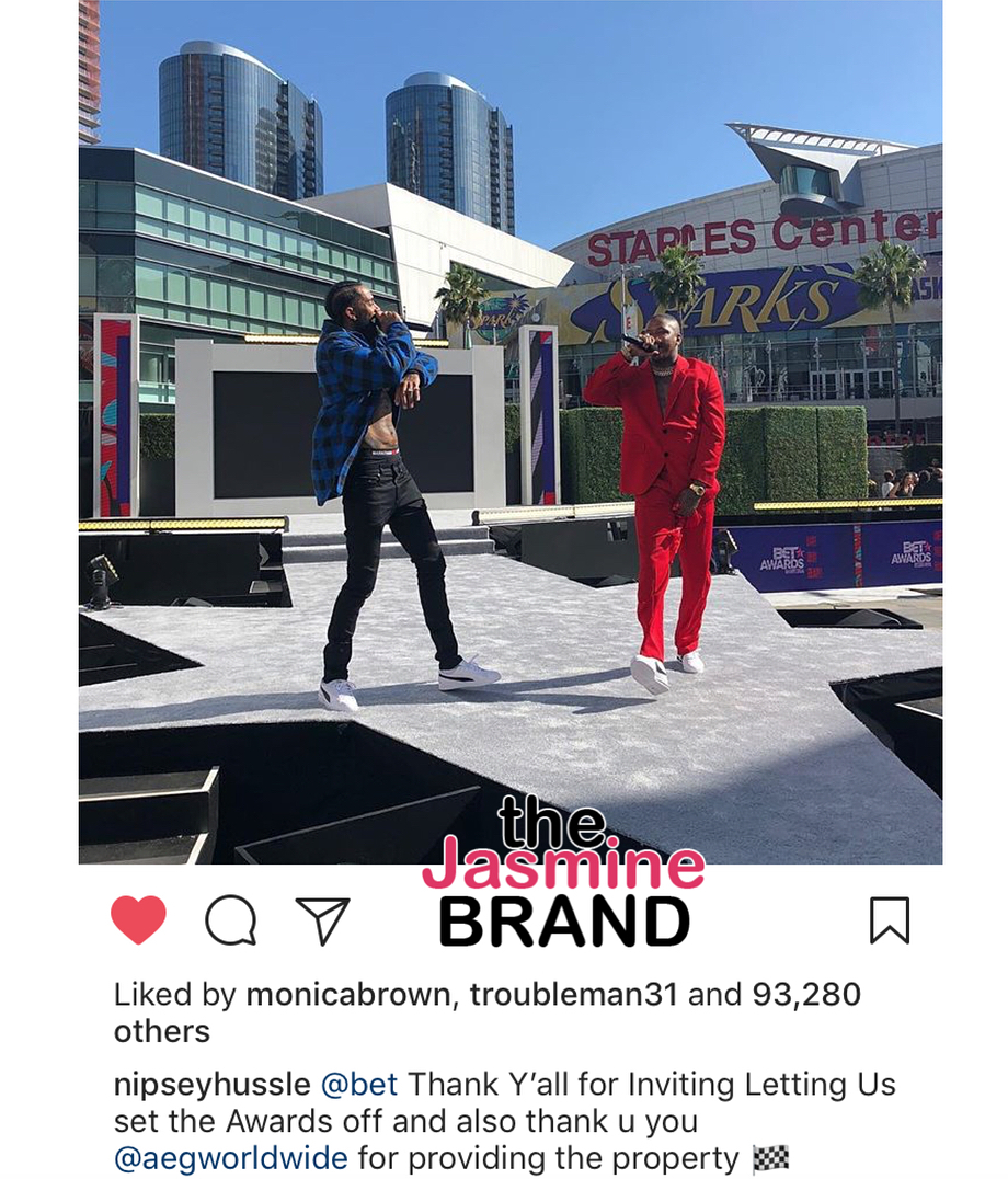 Following his performance, Nipsey took to social media to thank BET for allowing him the opportunity to perform.