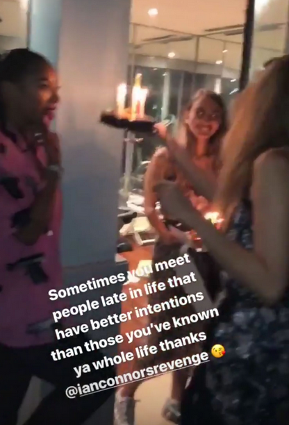 Although Tommie was front row to see the seasons latest, she was also celebrating her 34th birthday. She enticed the idea Connor and her could be an item after she penned a couple of sweet messages thanking Ian for her cake. She wrote,