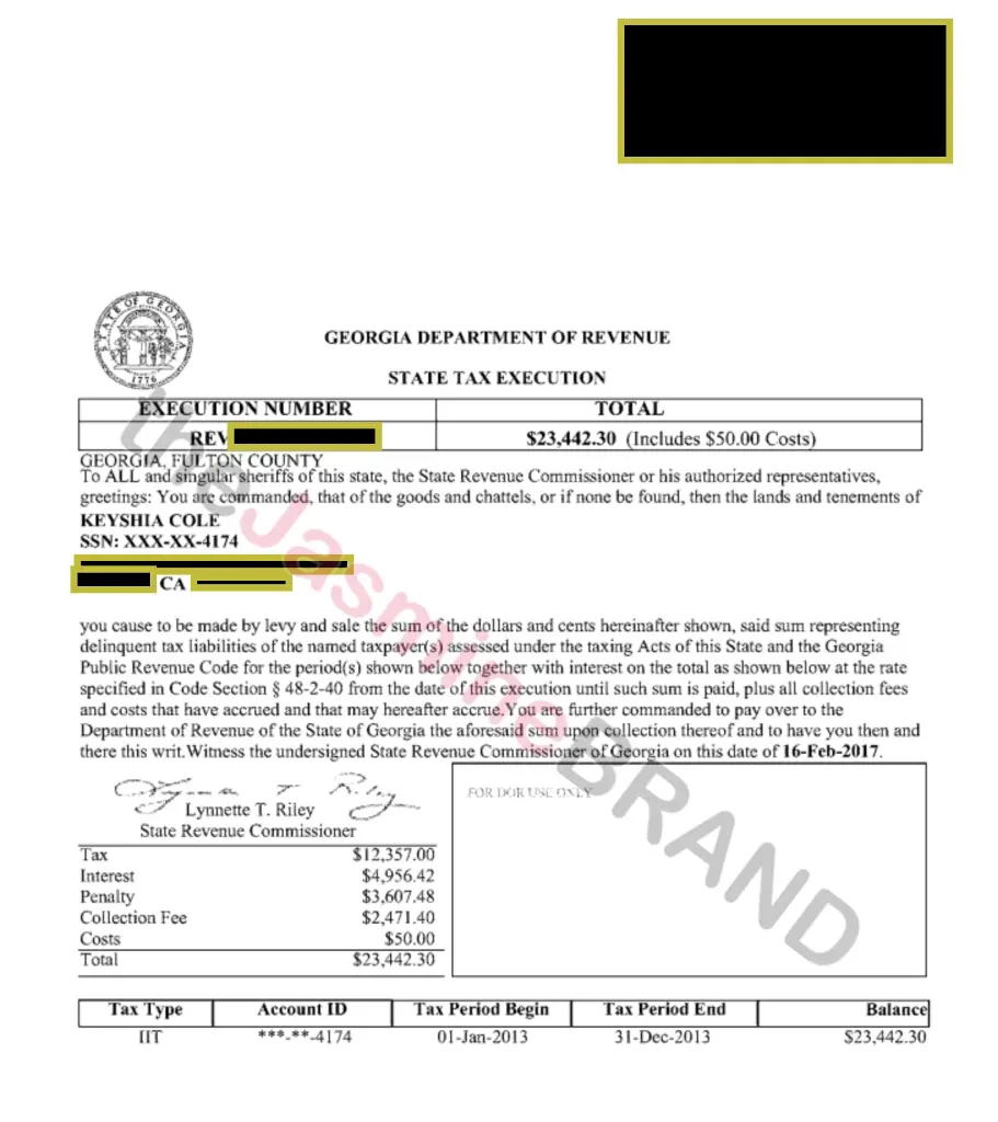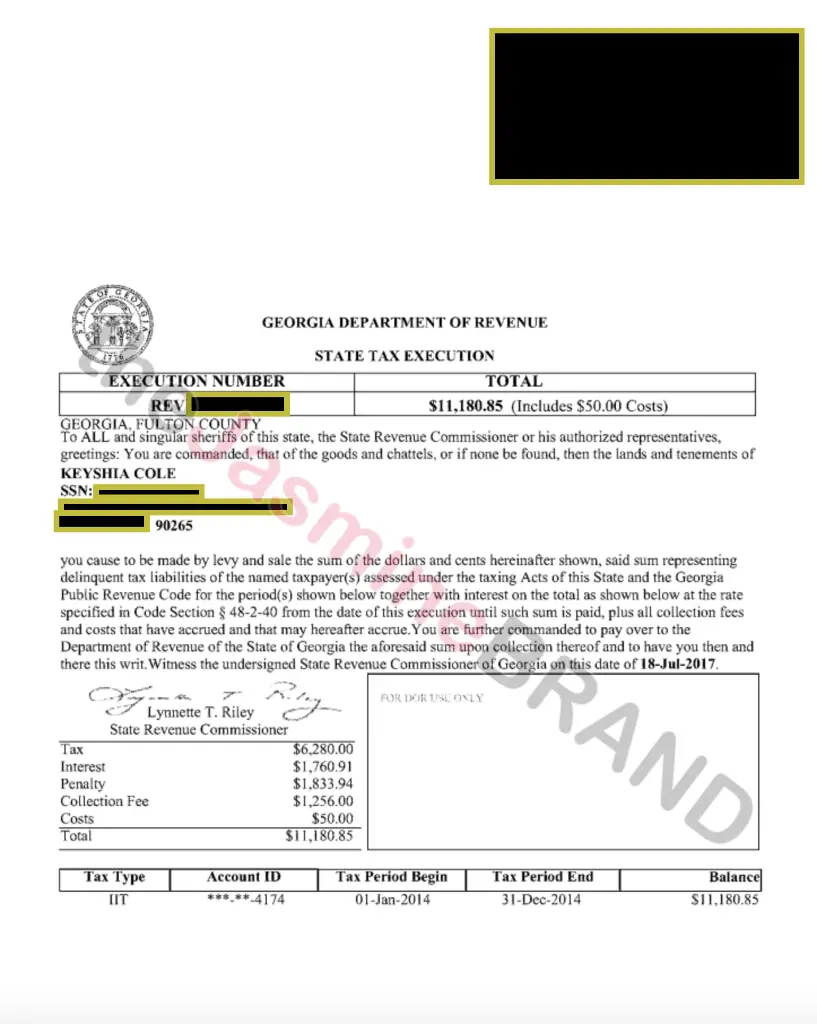 Last month, the singer and former Love & Hip Hop Hollywood star was hit with two state tax liens by the Georgia Department of Revenue.