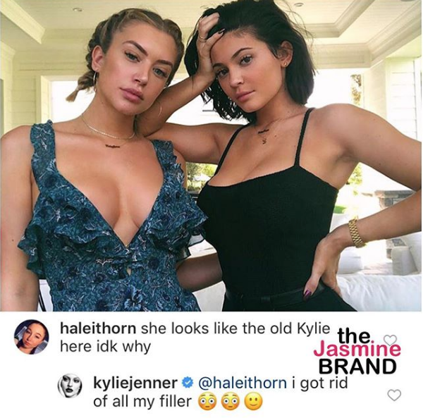 Kylie responded that she no longer uses lip filler to make her lips fuller. She responded,