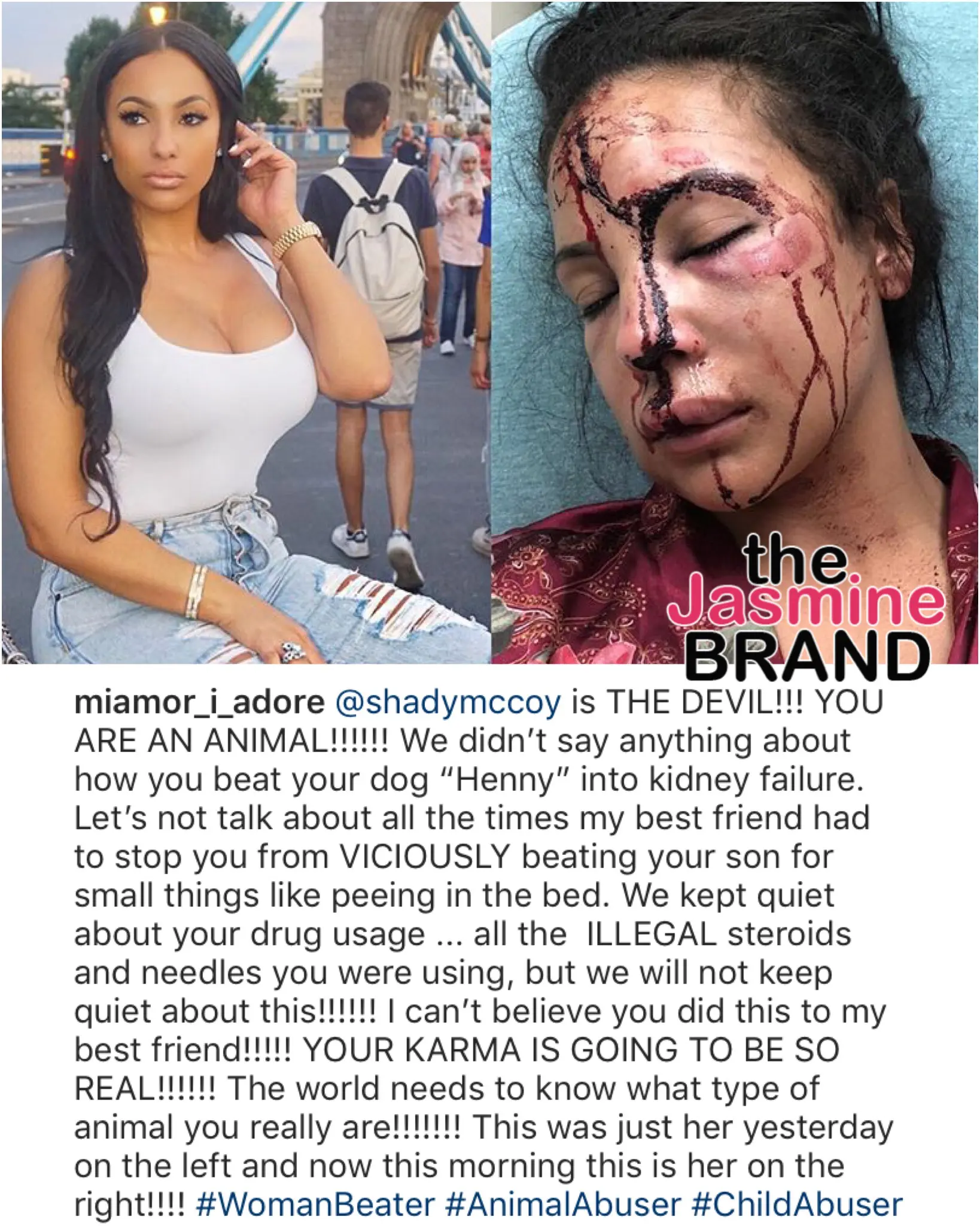 @shadymccoy is THE DEVIL!!! YOU ARE AN ANIMAL!!!!!! We didn’t say anything about how you beat your dog “Henny” into kidney failure. Let’s not talk about all the times my best friend had to stop you from VICIOUSLY beating your son for small things like peeing in the bed. We kept quiet about your drug usage … all theILLEGAL steroids and needles you were using, but we will not keep quiet about this!!!!!! I can’t believe you did this to my best friend!!!!! YOUR KARMA IS GOING TO BE SO REAL!!!!!! The world needs to know what type of animal you really are!!!!!!! This was just her yesterday on the left and now this morning this is her on the right!!!!