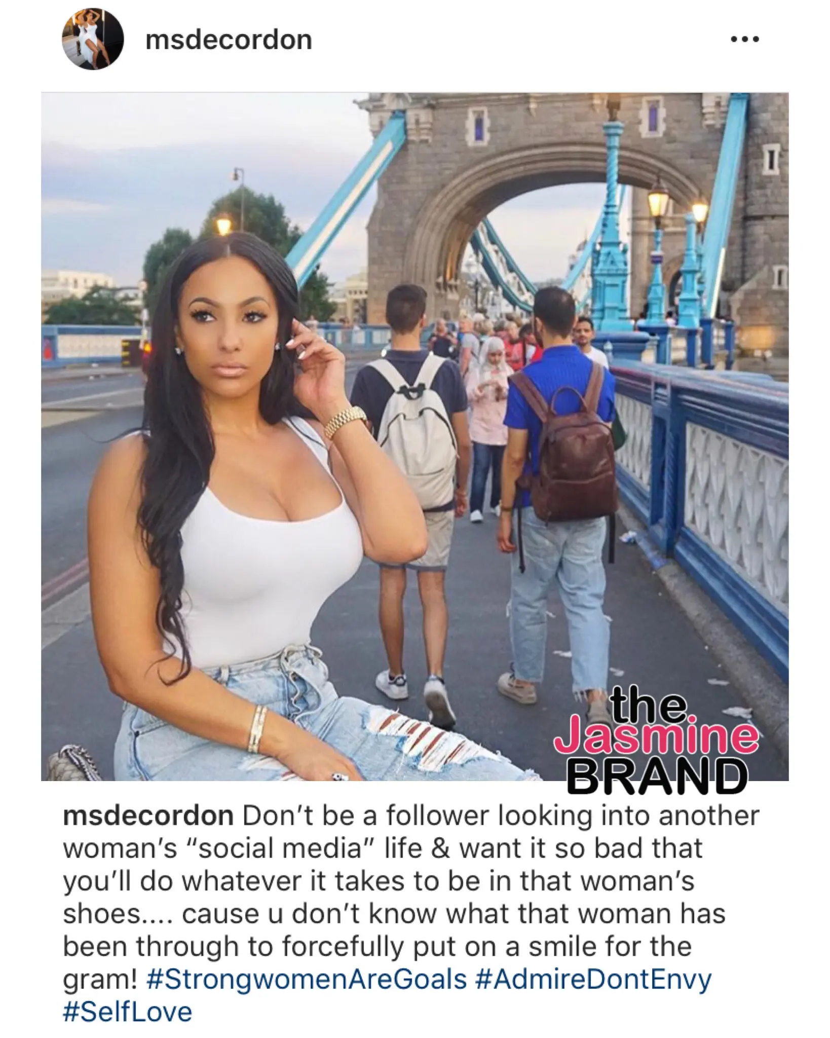 Mia, along with LeSean and Delicia, were vacationing in London when the alleged attack occurred. Delicia hinted at trouble in paradise when she posted a cryptic message on her latest Instagram post about not believing everything you see on social media.